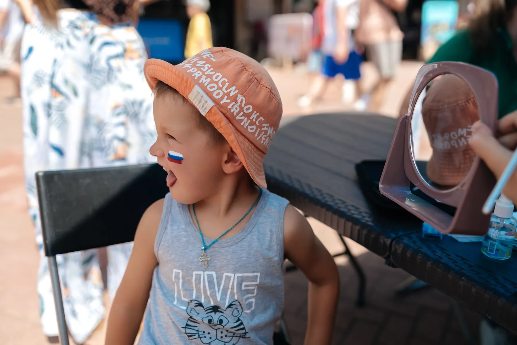 Аквагрим в цветах триколора;