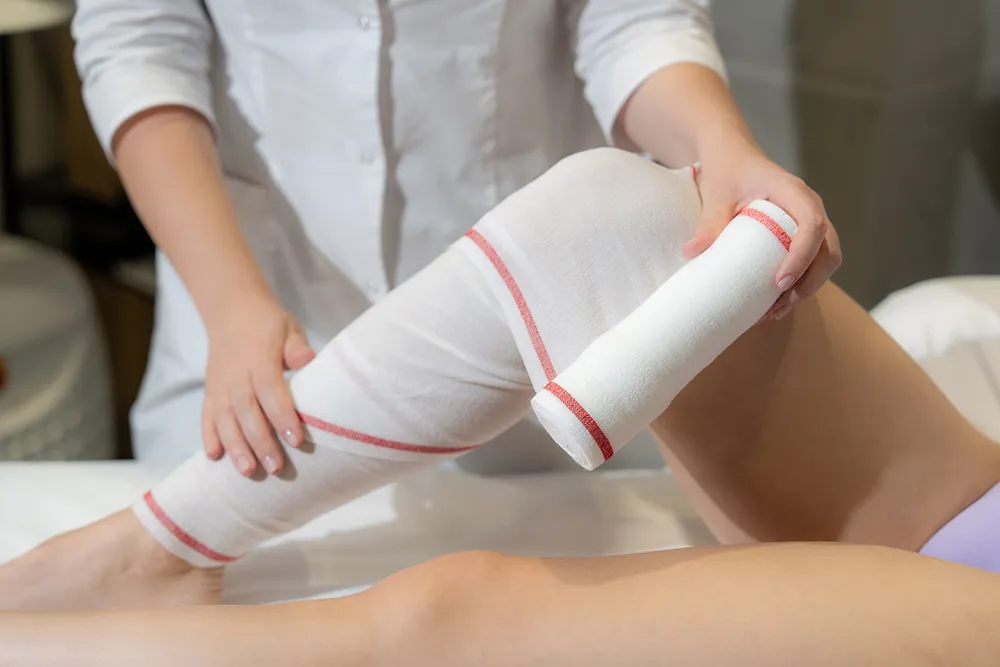 Бандажное обертывание — это косметическая процедура, которая заключается в обертывании определенных частей тела специальными бандажами или пленками, пропитанными активными веществами. Этот метод используется для улучшения состояния кожи, коррекции фигуры и стимуляции потоотделения, что может способствовать быстрому снижению объема в проблемных зонах.
